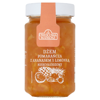owoce (pomarańcze 16%, ananasy 15%, limonki 14%), cukier, woda, substancje żelujące - pektyny, cytryny, regulatory kwasowości - cytryniany sodu