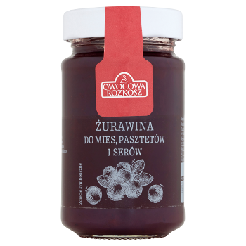 żurawina 45%, woda, cukier, substancje żelujące - pektyny, regulatory kwasowości - cytryniany sodu, substancja zagęszczająca - mączka chleba świętojańskiego