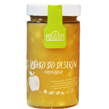 jabłka 60%, woda, cukier, skrobia modyfikowana, regulator kwasowości - kwas cytrynowy, substancja konserwująca - sorbinian potasu, przeciwutleniacz - kwas askorbinowy, cukier waniliowy (cukier, skrobia ziemniaczana, wanilia (ekstrakt wanilii w proszku, kawałki wanilii), aromat waniliowy, substancja przeciwzbrylająca krzemian wapnia).